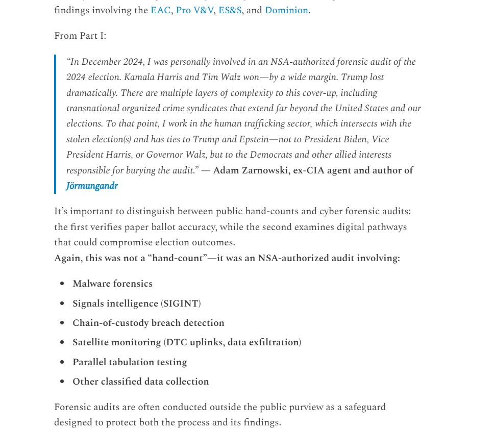 Simply put, if we had found out what we know today on or before January 20, 2025, there would be no Trump administration. It was found out that this last election was likely hacked by individuals who broke into a computer experts home to steal computer algorithms and key codes from his safe. They then gathered in a state I consider known for its election theft, as its governor’s races have been stolen more than twice already, for an election night hacking party and this information needs to be validated.