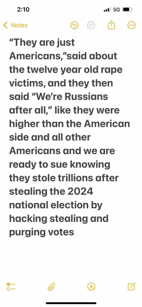 Disgusting Russians who stole $38 Trillion from us and do we accept this type of behavior and you can see they were against Black rights and owned 22 yachts there on sex trafficking island. Do you think they care about your Permanent Fund Dividend or YOUR PENNY? WE DEMAND ARREST WARRENTS FOR ALL OF THEM AND A FINANCIAL CLASS ACTION SETTLEMENT